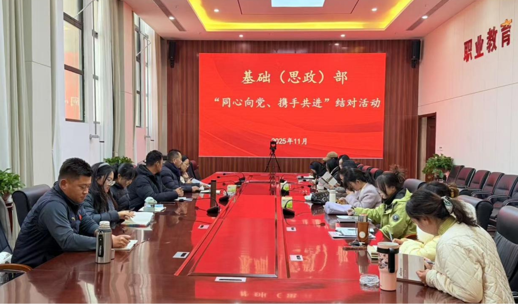 为深入贯彻新时代党的建设总要求和新时代党的组织路线,进一步加强党员队伍建设,搭建党员与群众的联系桥梁,引导优秀群众教师向党组织靠拢,基础(思政)部正式启动“同心向党、携手共进”党员结对活动。